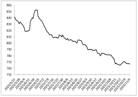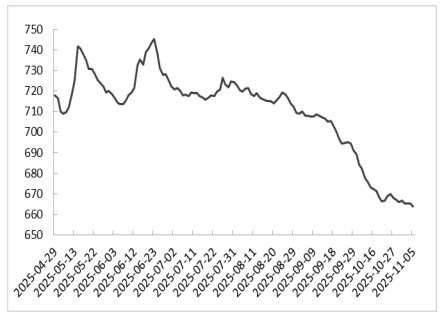 本期淄博新材料(先进高分子材料)价格指数均值为767.87,较上期769.07下跌1.20。其中,淄博PC价格指数为729.63,较上期729.63持平,呈平稳运行走势。主因市场消息面变化有限,原料成本低位运行,卖方积极出货,下游刚需采购,市场缺乏驱动因素,PC价格指数平稳运行。淄博PA价格指数为625.36,较上期626.09下跌0.73,呈先跌后涨走势,均值低于上期。主因原料价格低位,成本缺乏利好支撑,叠加市场成交不旺,供大于求局面利空PA价格下跌;随着价格下跌,聚合工厂利润承压,厂家上调出厂价,受“买涨不买跌”情绪影响,下游补货稍好,带动PA价格指数跌后反弹。淄博PET瓶片价格指数为864.31,较上期870.41下跌6.10,呈下跌走势。主因原料PTA及瓶片期货偏弱震荡,市场氛围偏弱,下游采购意愿较低,供应端让利出货,带动PET瓶片价格指数下跌运行。